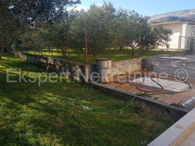 Trogir,Plano,veliko imanje na 2100 m2 zemljišta,u naravi dvije kuće,jedna prizmenica cca 90 m2,(komforan dvosoban stan) s garažom a druga je katnica 240 m2 s garažom ( dva odvojena komforna dvosobna stana) te pušnica od cca 15 m2,te još jedna garaža .Svi objketi su legalizirani.Svaka kuća se nalazi na svojoj parceli pa je vrlo jednostavno moguće razdvanje u dvije odvojene cijeline,a moguća je i nadogradnja i proširenje svake kuće obzirom da se nalaze na velikim parcelama koje su zasađene vočkama(masline i agrumi).Moguća kupnja kuća zasebno .Cijena manje kuće je 280.000 eura a cijena veće kuće je 420.000 eura .Vlasništvo uredno.