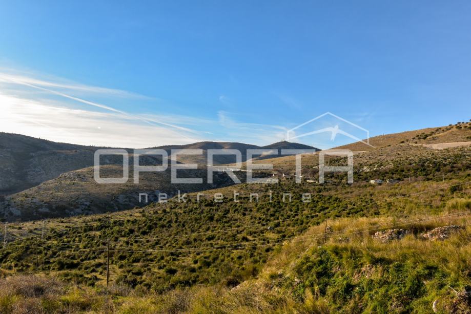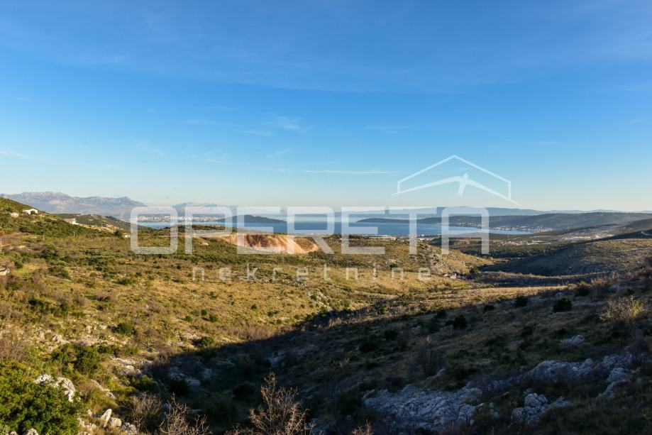 U Planom kraj Trogira prodaje se građevinsko zemljište s prekrasnim pogledom na Split, Kaštelanski zaljev i okolne otoke.
