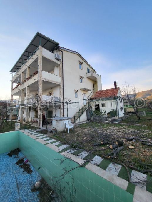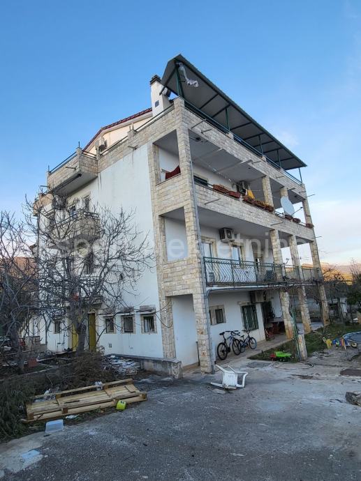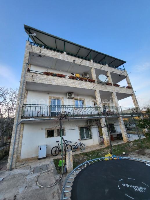 Trogir,Plano, samostojeća kuća 660 m2 na četri etaže,sa bazenom na velikoj parceli od cca 1000 m2.Kuća ima 3 velika stana i podrum sa konobom,jednim apartmanom,teretanom,praonicom,ostavom i wc-om.Uz kuću se nalazi i velika dupla garaža (58 m2) te nekoliko parking mjesta.Ispred kuća ima bazen (24 m2),te cisternu za vodu(čatrnja) kao i jedna mala kućica sa kominom.Na prvom katu se nalazi veliki trosoban stan sa tri spavaće sobe,dva kupatila,hodnik,kuhinja sa blagovaonicom i veliki dnevni boravak,te velika terasa sa koje ima pogled na more.Na drugom katu se također nalazi trosoban stan sa tri spavaće sobe ,tri kupatila,hodnik,kuhinja sa blagovaonicom i veliki dnevni boravak te velika terasa sa koje se pruža lijep i otovoren pogled na more i kaštelanski zaljev.Na trećem (zadnjem) katu se nalazi također još jedan trosoban stan sa tri spavaće sobe i dva kupatila,hodnikom,kuhinjom,blagovoanicom i velikim dnevnim boravkom ,te još većom terasom sa koje se pruža panormaski pogled na more i okolicu.Cijela kuća ima centralno grijanje na lož ulje te klima uređaje u svim stanovima.Kuća se nalazi na mirnoj lokaciji,u blizni dućana,a opet blizu glavne ceste.Vlasništvo uredno.Za više info kontaktirati agenciju.