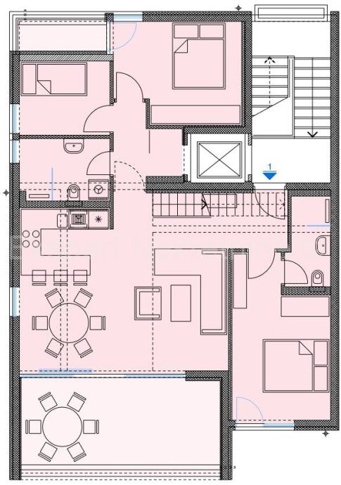 Trogir,Saldun,dvoetažan penthouse 130 m2 (109m2+21m2 lođe) sa velikom krovnom terasom (78 m2),te jednim parkingom ,u novogradnji sa zajedničkim bazenom i liftom.Stan je orijentiran jugozapad-sjeveroistok-sjeverozapad a nalazi se na dvije etaže ,na dojnjoj etaži ima tri spavaće sobe,dva kupatila,hodnika,ostavu,kuhinju sa blagovaonicom i dnevnim boravkom te dvije lođe (21 m2) sa koje ima otvoren pogled na more, unutarnje stubište koje vodi na gornju etažu na kojoj se nalazi predsoblje,još jedna soba sa kupatilom te izlaz na veliku krovnu treasu (78 m2) na kojoj se nalazi ljetna kuhinja te roštilj i sa koje se pruža neometan panoramski pogled na more.Stan je povezan sa gražom liftom sa kojim se izlazi direktno u stan na gornju ili donju etažu.