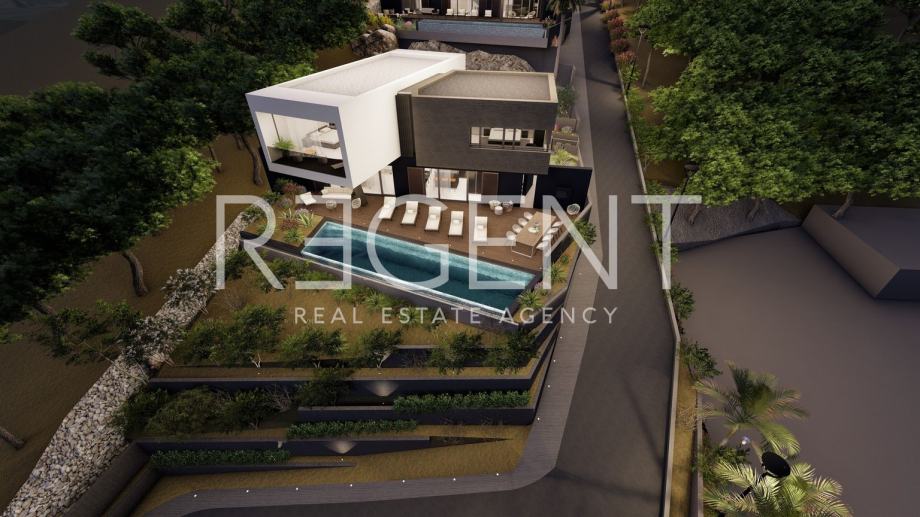 U predivnom malom mjestu pored Trogira smjestila se vila u izgradnji, nalazi se u nizu prekrasnih vila.Na zemljištu od 599 m2, vila je ukupne površine 373 m2. Okrenuta sjever- jug, otvorenog pogleda na more udaljena od mora 300 m, u mirnom okružju, istovremeno u blizini centra, škole, vrtića, javnog prijevoza, glavne ceste, crkve parka, šume.Vila se prodaje potpuno završena bez namještaja sa ugrađenim sanitarijama po visokom standardu kvalitete, armirano betonska s toplinskom izolacijom (kamena vuna), potpuno klimatizirana, sa opremom dizalice topline. Oprema uključuje potpuno podno grijanje preko dizalica toplina, te instalacijsku pripremu za ugradnju solarnih panela. Pametna kuća sa alarmnim i video nadzorom. U vilu su ugrađeni visoko kvalitetne završne obloge podova keramika/ parket, visoko kvalitetna oprema za kupaonice, alu stolarija, sustav grijanja i hlađenja bazena.Kupac ima mogućnost u suradnji s investitorom tijekom izgradnje izvršiti izmjene interijera ( promjena dizajna podova, opreme, boja) bez naknade ukoliko to ne zahtjeva dodatne troškove.Kupac ima mogućnost u dogovoru s investitorom kompletiranja nekretnine namještajem po njegovom izboru, uz nadoplatu.Vila će biti izgrađena u 2024. Za više informacija, kontaktirajte našeg agenta na brojeve telefona: