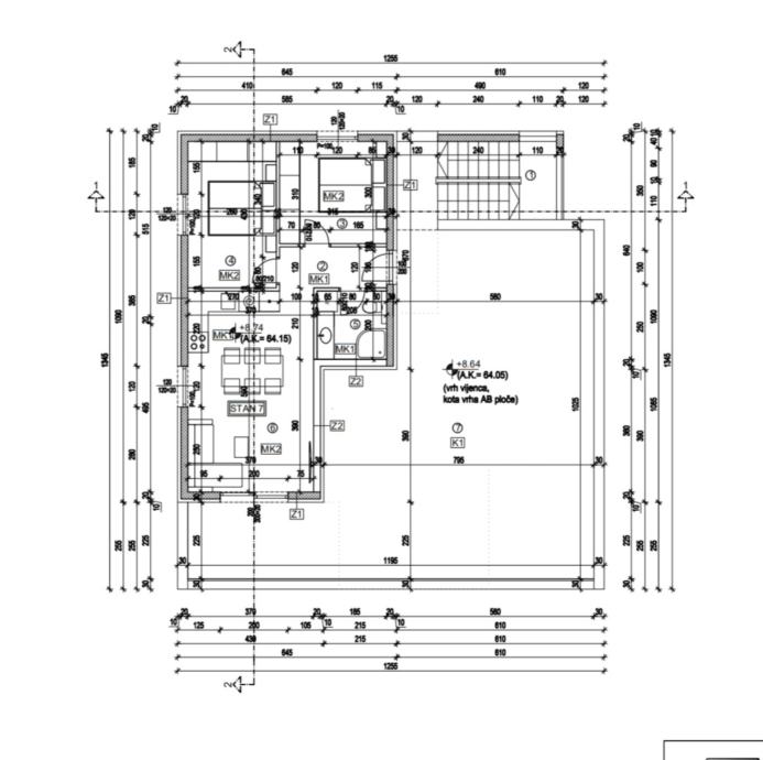 Prodaje se stan u izgradnji u Trogiru 800m od centra grada. Stan se nalazi na zadnjoj 3.etaži, sastoji od 2 spavaće sobe , 1 kupaonice, hodnik, kuhinja i dnevni boravak, nenatkrivena krovna terasa te 2 parking mjesta. Građevinska dozvola je dobivena i gradnja je krenula u 3/2025, zacršetak 3/2026.