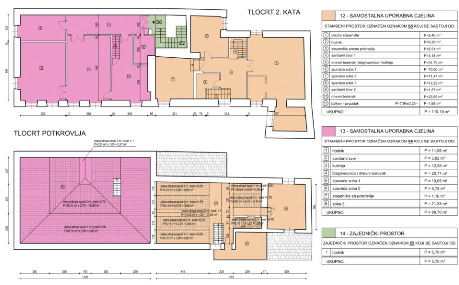 Tlocrte etaža i kvadrature prostorija možete vidjeti u prilogu.