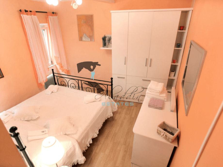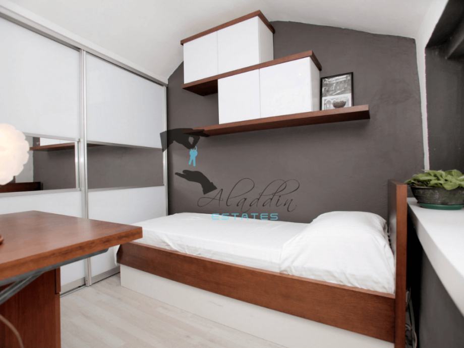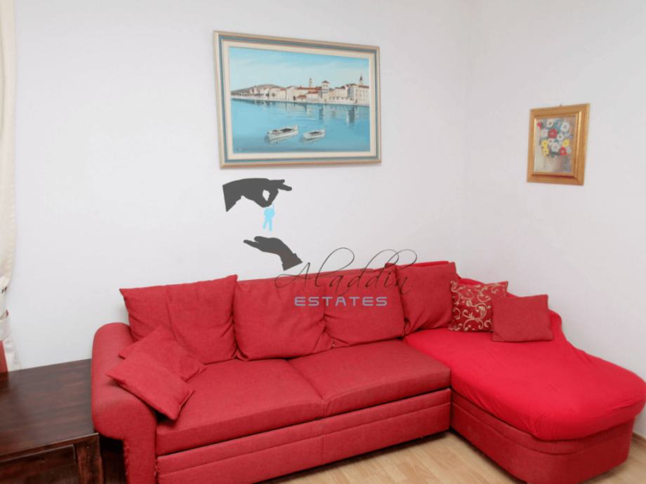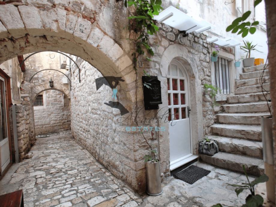 Renoviran dvoetažni peterosobni stan ukupne neto površine 110,19 m2 nalazi se na drugom katu i u potkrovlju kamene zgrade u staroj gradskoj jezgri u blizini Katedrale, strogom centru Trogira, a u mirnom okruženju starih gradskih uličica.