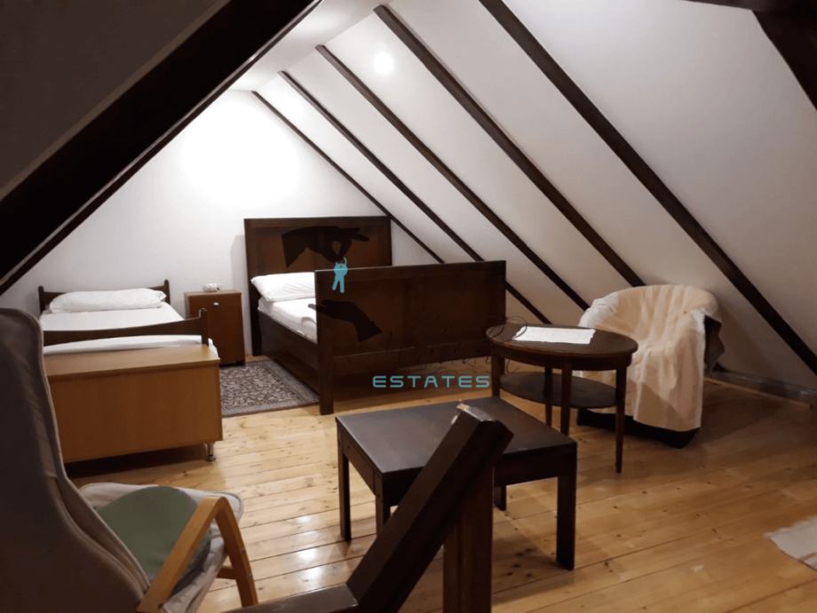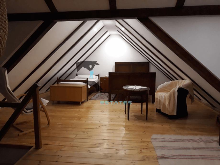 First floor – consists of a living room with kitchen and dining room, two beautiful bedrooms, bathroom with toilet, entrance staircase, hallway and stairs to the attic.