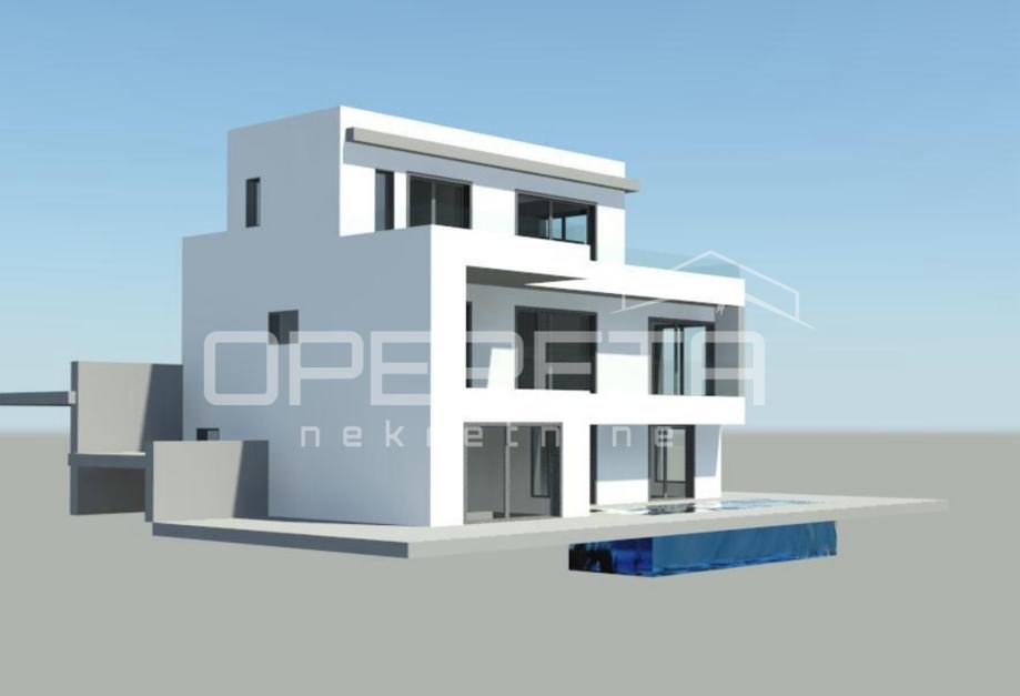 Dok većina parcela tek čeka dokumentaciju, ovdje je sve spremno za gradnju. Izdana je pravomoćna građevinska dozvola i izrađen projekt za modernu vilu na tri etaže s četiri spavaće sobe, neto površine oko 200 m². Koncept predviđa prostranu dnevnu zonu koja izlazi na terase, vrt i bazen, velike staklene otvore prema pogledu i logičnu organizaciju spavaćih soba za mir i privatnost. Panorama otoka prati kuću kroz dan, a zalasci sunca postaju svakodnevna scena.