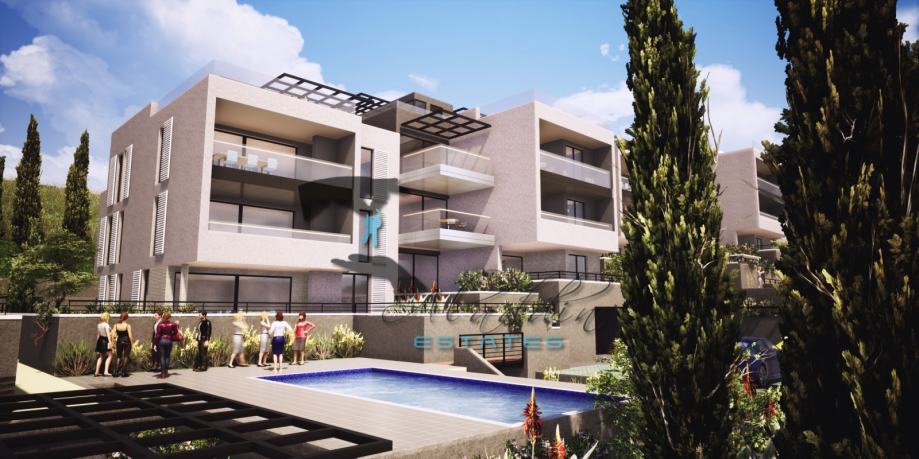 The apartment also offers another covered terrace, while internal stairs lead to a spectacular well-arranged roof terrace with an unbeatable sea view. The roof terrace has a closed part with a exceedingly sizeable bedroom and bathroom, hallway and storage room, and an open part with a smaller covered terrace and a larger uncovered terrace. A smaller private pool of 10 m2 with an outdoor shower and a sunbathing area is also there, with heating installations prepared. The roof terrace possesses electrical installations, hot and cold water and drainage, and ambient LED lighting to create a special atmosphere. The owner will be able to install pergola, summer kitchen and barbecue. The place for the summer kitchen has already been set up, along with protective shutters when it is not in use. The penthouse apartment, as well as the roof terrace, will have its own private and exclusive elevator access, i.e. strictly for the apartment users. Apartment in summary: