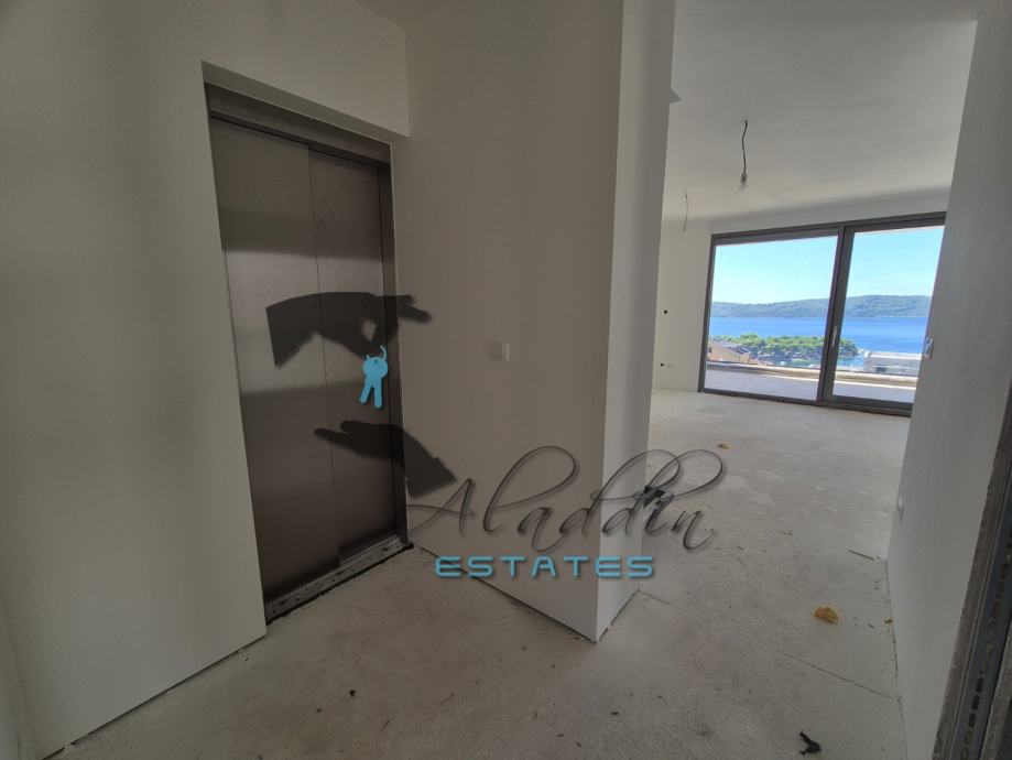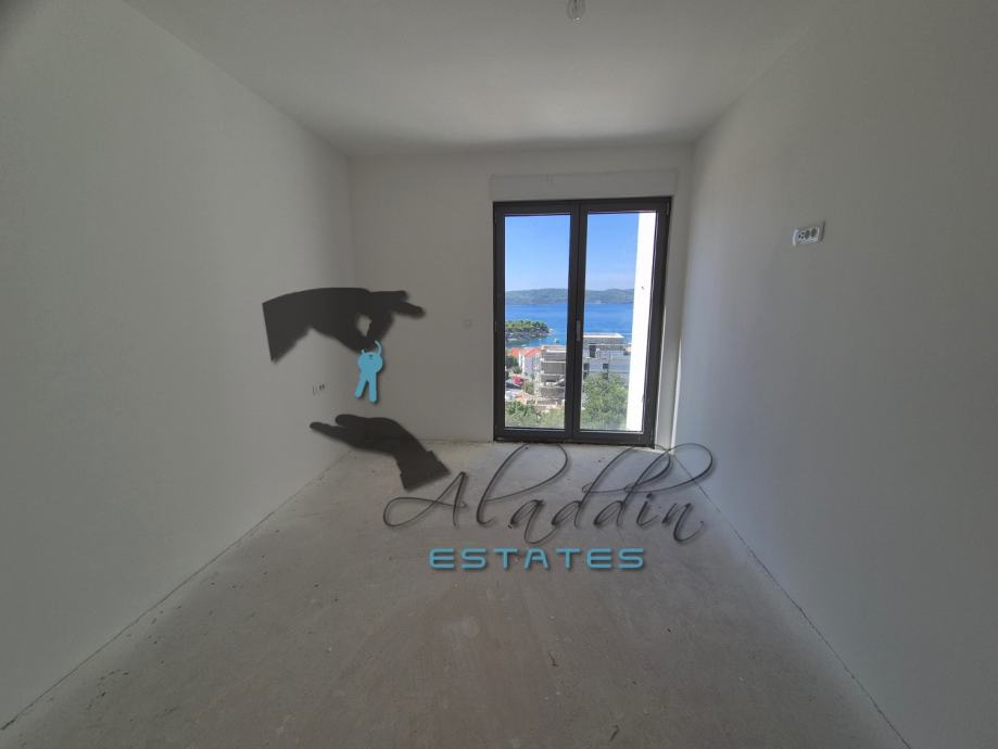 Luksuzna stambena zgrada u novogradnji u Trogiru s tri raskošna stana, po jedan po etaži. Dostupan je penthouse stan na drugom katu koji se sastoji od dnevnog boravka, blagovaonice i kuhinje kao jedne cjeline, tri komforne spavaće sobe, centralnog hodnika, dvije kupaonice i ostave. Stan uključuje i prekrasnu prostranu lođu od preko 18 m2 sa uistinu prelijepim pogledom na more, te po jedno garažno parkirno mjesto, s mogućnošću dokupnje dodatnih mjesta.