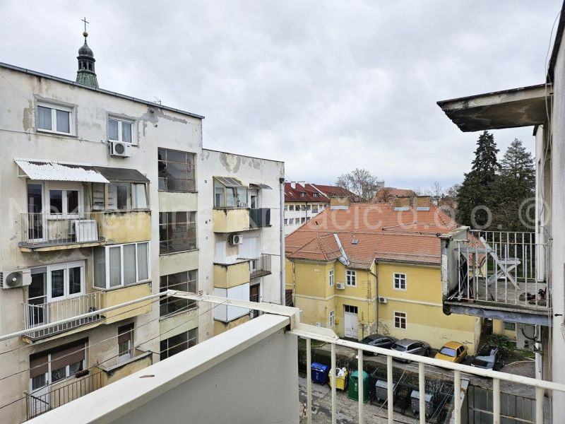 Strogi CENTAR, lijep svjetao stan na četvrtom katu ( nema lift ), sastoji se od dvije spavaće sobe - roditeljske i dječje, prostrane kuhinje s blagovaonicom i izlazom na natkriveni balkon, ima smočnicu, ulazni hodnik i kupaonicu.