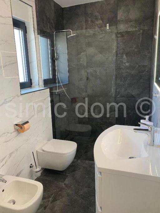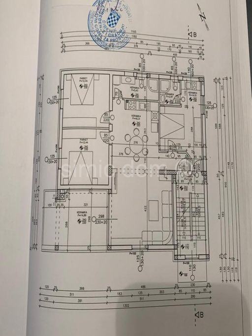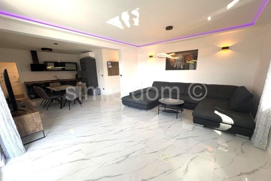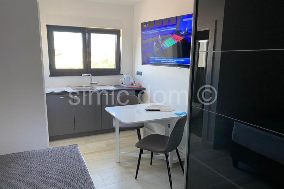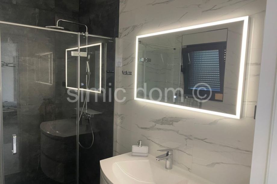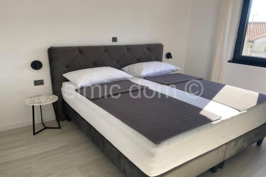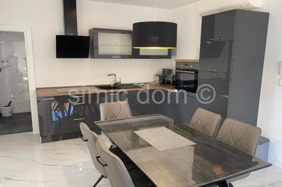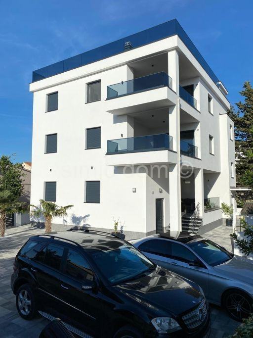 Posredujemo pri prodaji kompletno namještene cijele etaže prvog kata novije zgrade, koja je udaljena svega 50 m od plaže, s pogledom na more i cijeli arhipelag. Etaža se sastoji od velikog apartmana i studio apartmana, a tlocrt i raspored prostorija dopušta da cijela etaža bude jedan veliki apartman. Etaža ima unutarnju površinu od 98 m2 te još 14,89 m2 natkrivene terase, a pripada mu i parkirno mjesto u dvorištu zgrade. S uračunatim koeficijentima svih pripadaka nekretnina ima neto korisnu površinu od 105 m2. Prelijepi veliki apartman sastoji se od dvije spavaće sobe, kupaonice, kuhinje sa spojenom blagovaonicom i dnevnim boravkom te prostrane terase. Ovisno o željama vlasnika studio apartman lako se može uklopiti u tlocrt velikog apartmana i tako koristiti kao treća spavaća soba s en-suite kupaonicom. Apartmani su klimatizirani, opremljeni podnim grijanjem, namješteni i spremni za useljenje. Sav namještaj i oprema uključeni su u cijenu. Svaki apartman u zgradi ima vlastito brojilo za struju i za vodu. Apartman se nalazi na odličnoj lokaciji, blizu kafića, restorana te je udaljen par minuta hoda od dućana.
