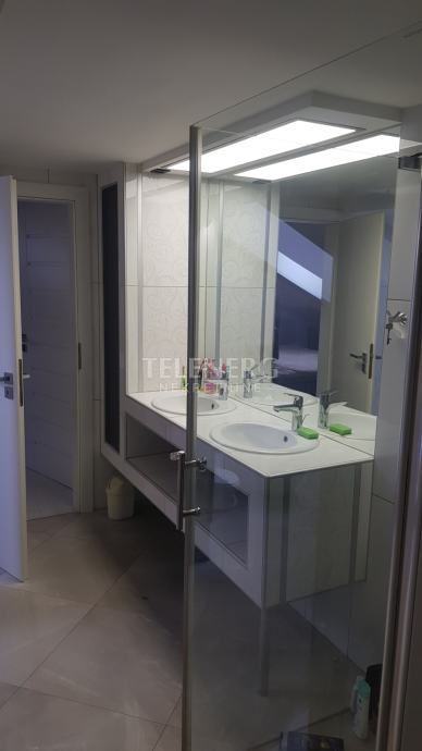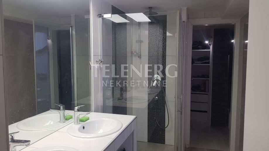 Na katu se nalazi spavaća soba sa ogromnim krevetom 240*210 i ugradbenim ormarom sa svojom kupaonicom iz koje se ulazi u walk-in ormar 4*3,5m podne površine.