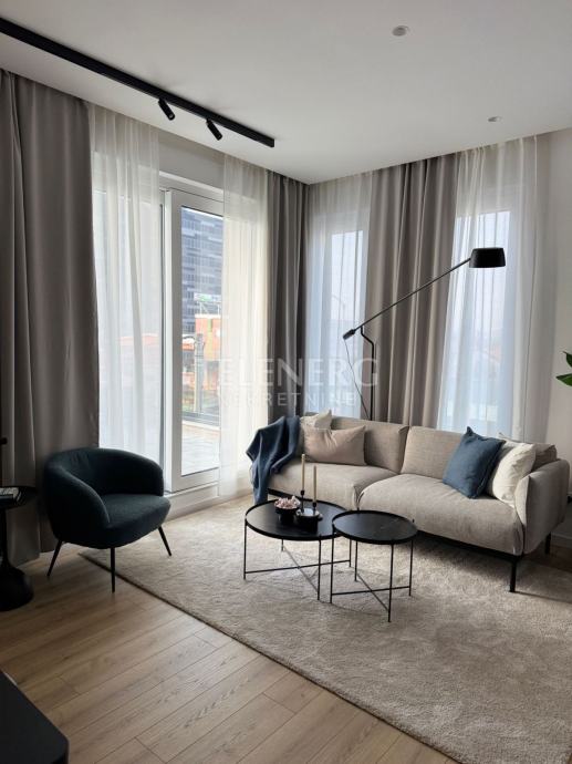 Iznajmljuje se dizajnerski uređeni trosoban penthouse stan, pun svjetlosti na odličnoj lokaciji, sa visokim stropovima 3m.