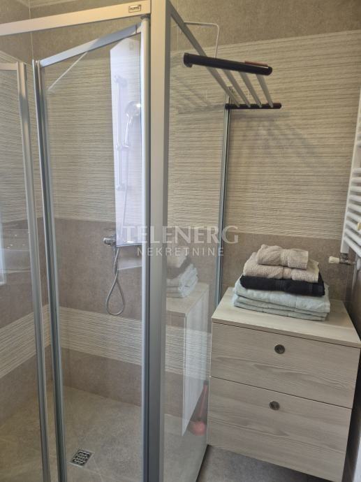 Stan je na prvom katu, ima balkon, grijanje je etazno plinsko, klime u sobama, tv u obje sobe.