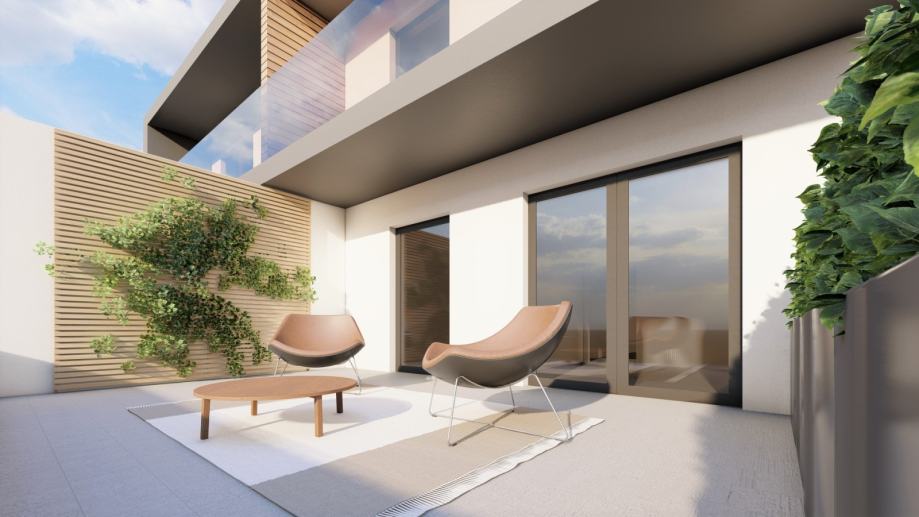 Stan je opremljen PVC stolarijom, podovi po izboru keramika/parket, protuprovalna vrta, staklene stijene, klima... Grijanje: podno, plinsko centralno.