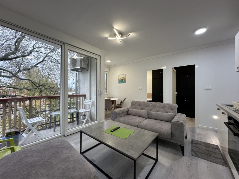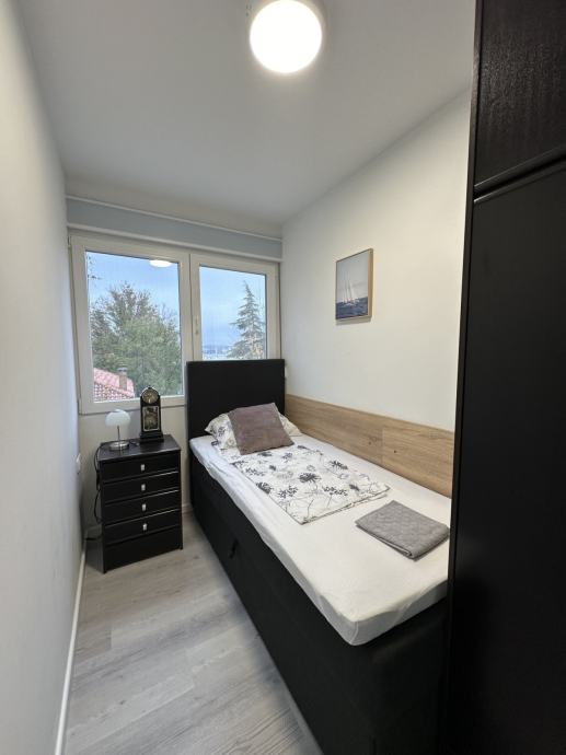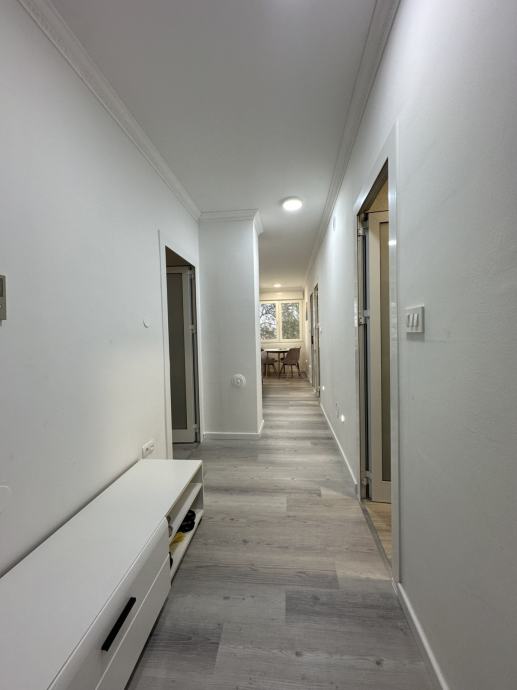 U centru Biograda na Moru u zgradi sa liftom, na prodaju je prekrasan novo renoviran trosobni stan. Stan je potpuno renoviran 2023.godine, prodaje se potpuno namješten. Sastoji se od hodnika, dvi spavaće sobe, kupatila, kuhinje s blagovaonicom, dnevnog boravka koji je predivno osvijetljen prirodnom svjetlošću kroz staklene stijene koje vode na terasu sa koje se vidi pruža pogled na more. Stan je dobro raspoređen tako da svaka prostorija ima dovoljno mjesta. Nalazi se u centru Biograda na Moru 100m od mora.