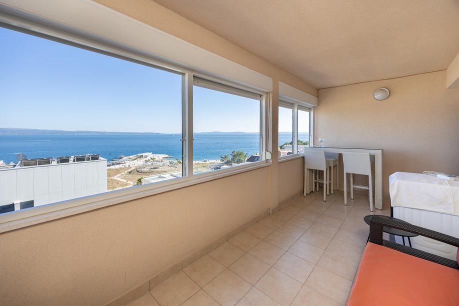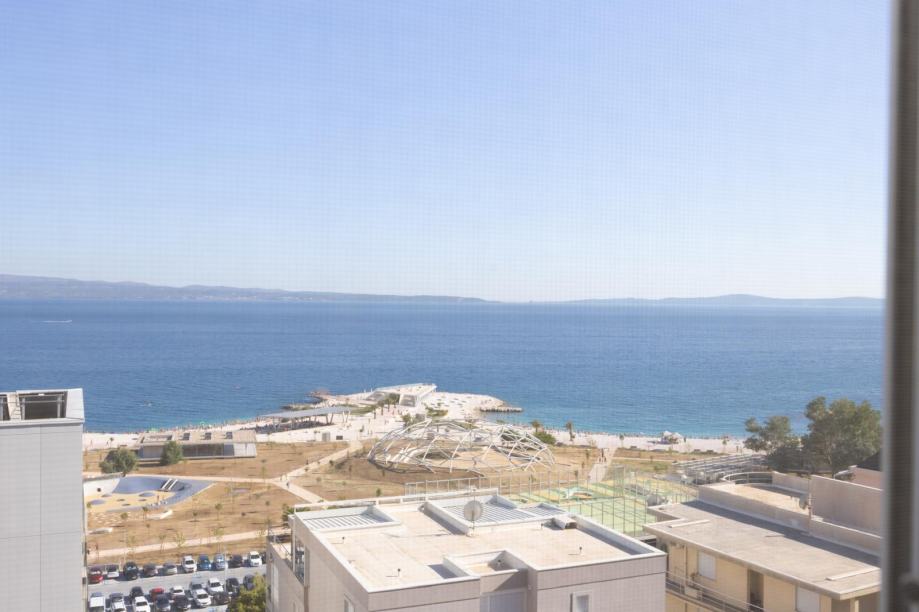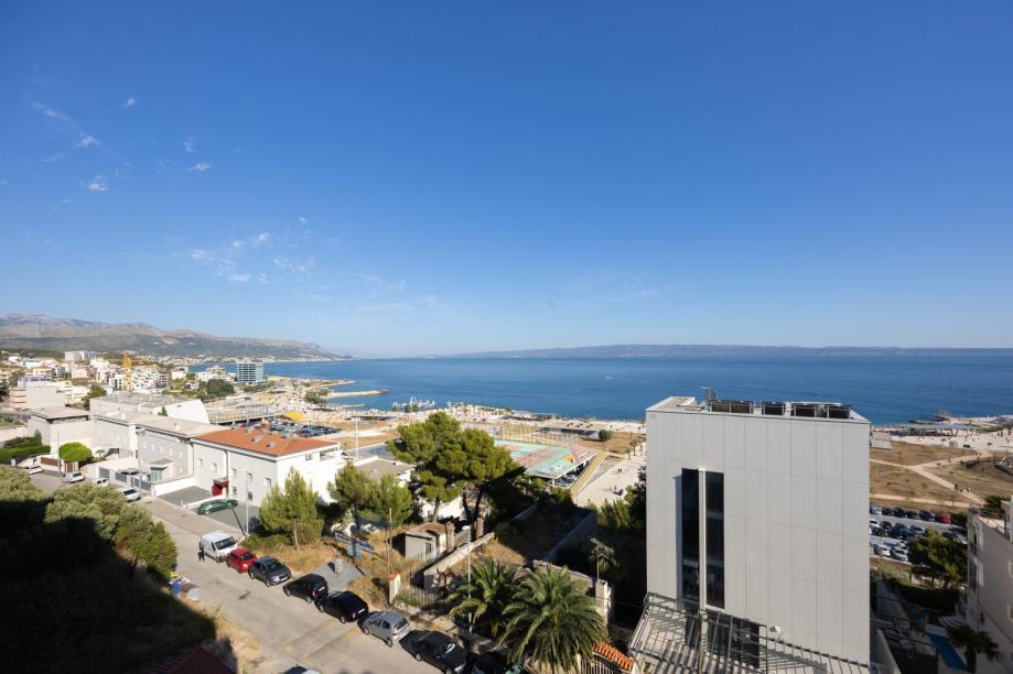Stan se proteže u smjeru sjever–jug, izuzetno je svijetao i prozračan, a panoramski pogled na more, Brač, Šoltu i cijeli Žnjan čini ga posebnim. S južne strane nalazi se veliki balkon savršen za opuštanje i uživanje u pogledu, dok manja sjeverna lođa pruža dodatnu ventilaciju i funkcionalnost.
