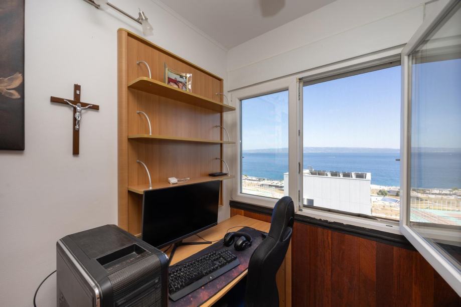 The apartment is oriented north–south, exceptionally bright and airy, with a panoramic view of the sea, the islands of Brač and Šolta, and the entire Žnjan area. On the south side, there is a large balcony perfect for relaxation and enjoying the view, while a smaller north-facing loggia provides additional ventilation and practicality.