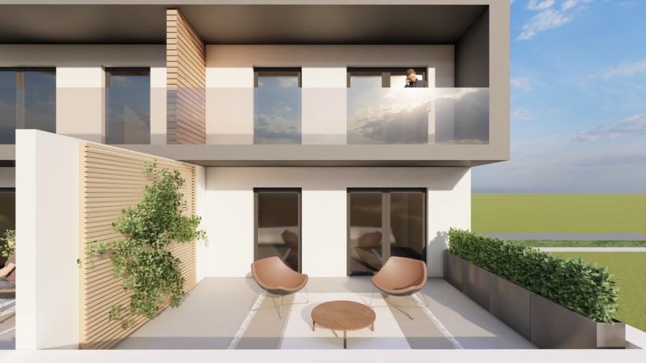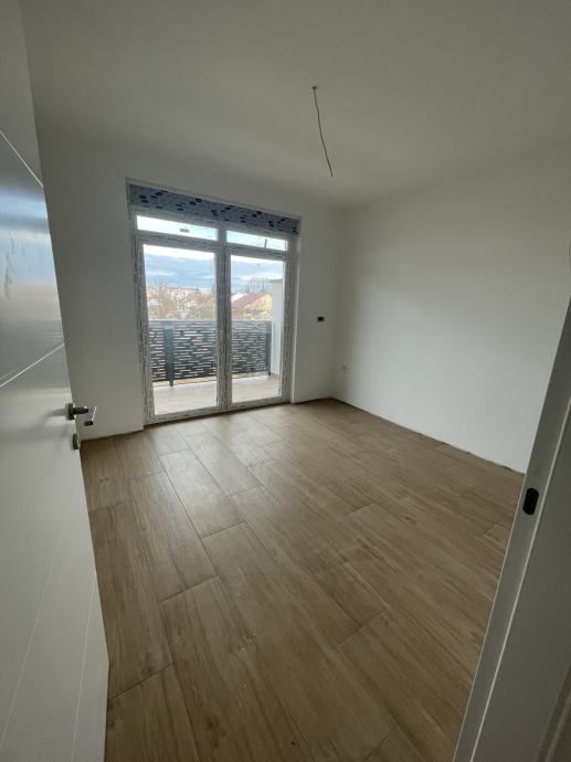 Stan je opremljen PVC stolarijom, podovi po izboru keramika/parket, protuprovalna vrta, staklene stijene, klima...