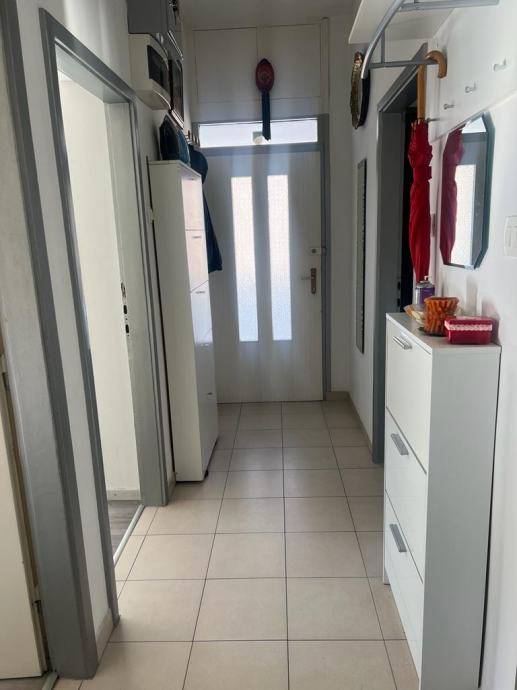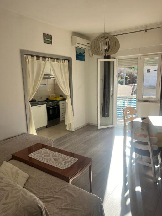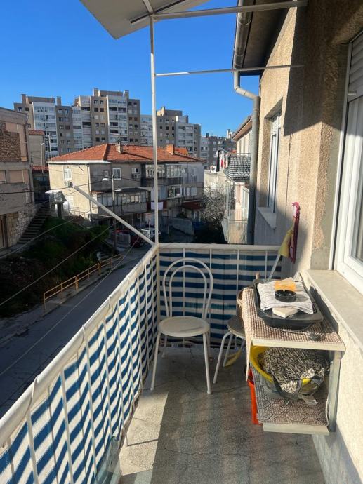 We are renting a three-bedroom apartment in Split, Kman district. The apartment is located in a quiet location on the 1st floor of a private house. It consists of three bedrooms, a living room with kitchen and dining room, a bathroom and a south-facing balcony (4m2).