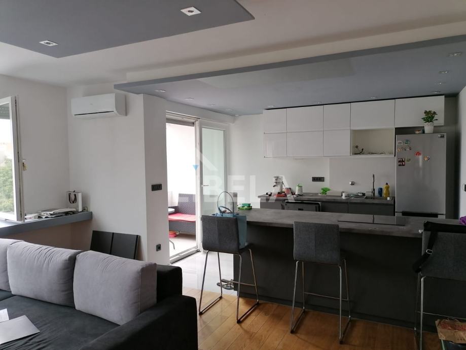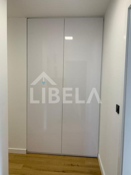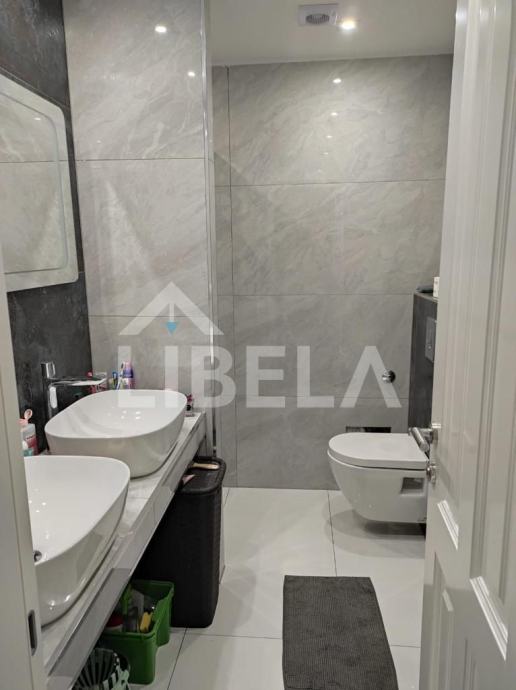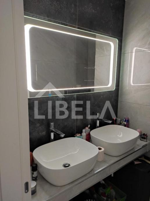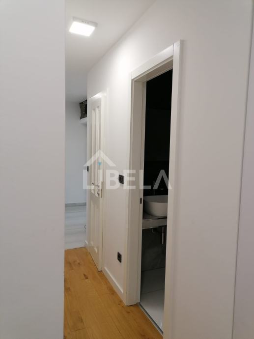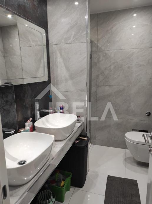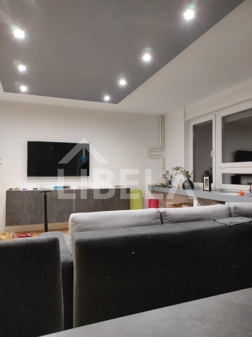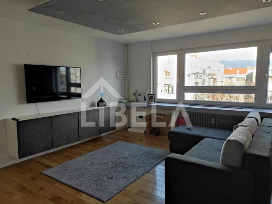 Stan je kompletno adaptiran 2020. godine, a sastoji se od ulaznog hodnika, dnevnog boravka, blagovaone i kuhinje kao open space cjeline, balkona, dvije spavaće sobe, kupaonice, toaleta i garderobe. Opremljen je vrhunskim parketom u dnevnom goravku i spavaćim sobama, kvalitetnim pločicama u kuhinji, kupaonici i toaletu gdje je provedeno i podno grijanje, te svim potrebnim uređajima kao i električnim roletama. Orjentacija stana je sjever i zapad, a s prozora se širi pogled prema Medvednici.
