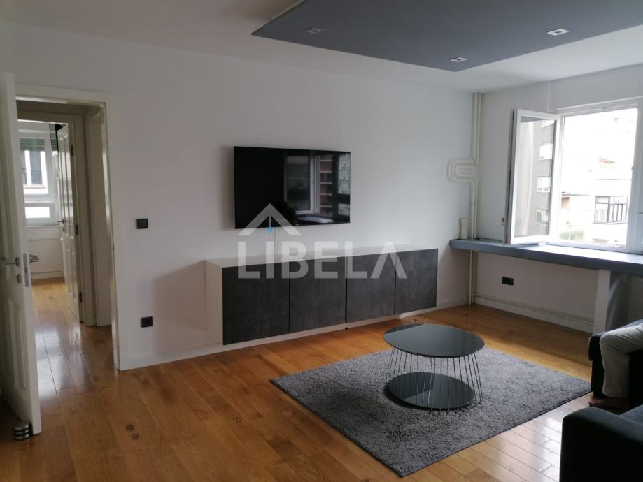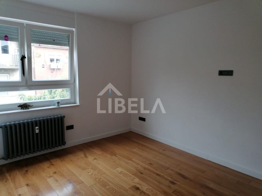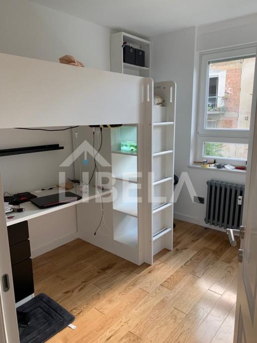 Iznajmljuje se troiposoban stan na petom katu zgrade iz 1965. godine građenoj od armirano-betonske vanjske konstrukcije u samom centru Zagreba. Zgrada ima dva lifta i videonadzor. Nalazi se u mirnoj ulici samo dvije minute hoda od javnog prijevoza i uz novi dječji park.