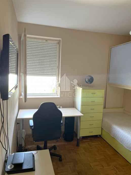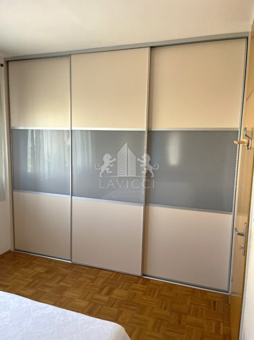 Stan je kompletno namješten, odmah useljiv i i funkcionalno raspoređen. Sastoji se od dnevnog boravka povezanog s kuhinjom i blagovaonicom, tri spavaće sobe, loggie koja pruža dodatni prostor za boravak, kupaonice s toaletom, zasebnog gostinjskog toaleta te izbe koja osigurava dodatni prostor za pohranu.