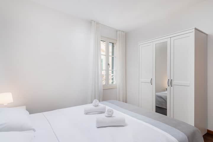 We mediate the rental of a large three-room apartment of 84m2, located in the very center of the city of Split, on Šperun. Only 100 meters away from Diocletian's Palace under the protection of UNESCO and other famous and attractive sights. Located in a new building with an elevator, this apartment is on the second floor. It has a spacious living room, fully equipped kitchen, 3 bedrooms, 1 bathroom with underfloor heating and 1 toilet. The bedrooms and living room have air conditioning, and high-speed WiFi is provided throughout the apartment. It is rented for the period 1.11.-1.4. at a price of €1,100 per month + utilities.