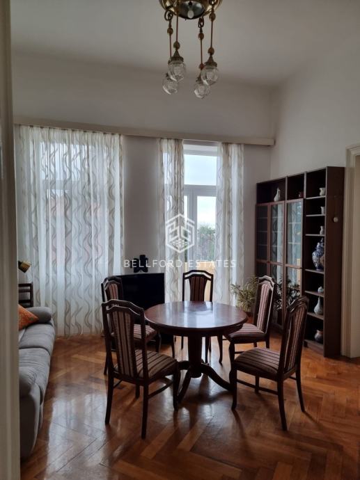 Iznajmljuje se prostran i potpuno namješten stan u samom srcu Opatije, iznad popularne plaže Lipovica. Stan se nalazi na prvom katu stambene vile s ukupno tri stana, u mirnoj i atraktivnoj mikrolokaciji, idealnoj za cjelogodišnje stanovanje. Ukupne je površine 99,36 m2 i kompletno je renoviran 2023. godine, s naglaskom na kvalitetnu izolaciju i PVC stolariju, što osigurava visoku razinu udobnosti.