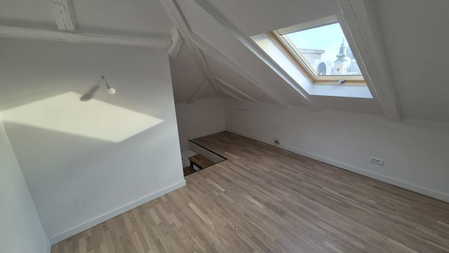 Prodaje se potpuno renoviran potkrovni trosoban stan od 56 m² u samom centru Zagreba, u mirnoj uličici uz Radićevu i Kamenita vrata.