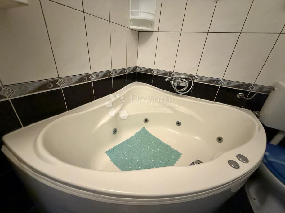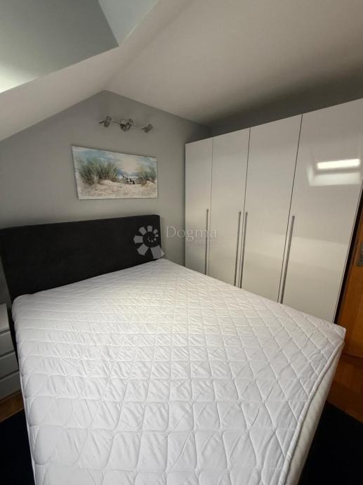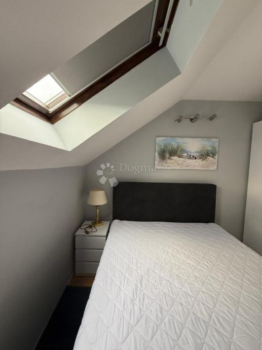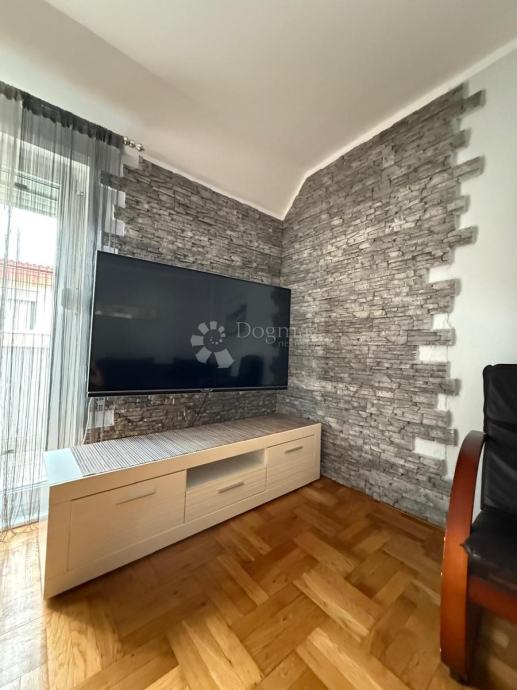 Stan je moderan jednoetažni u potkrovlju na 2.katu. Ima 2 spavaće sobe + dnevni boravak, kuhinju, kupaonicu sa termalnom hidromasažnom kadom, 2 balkona te ostavu.