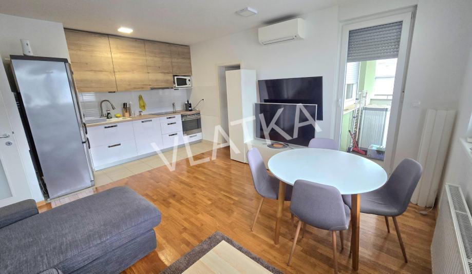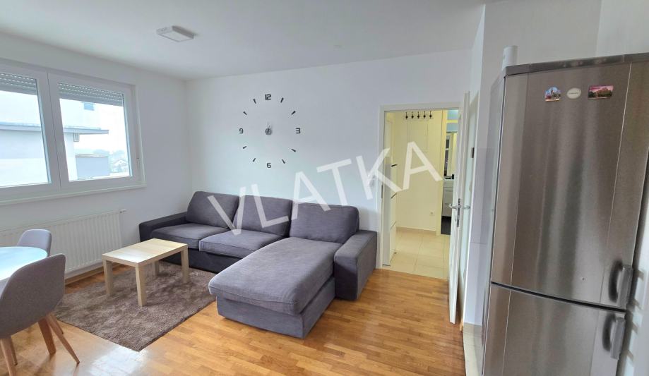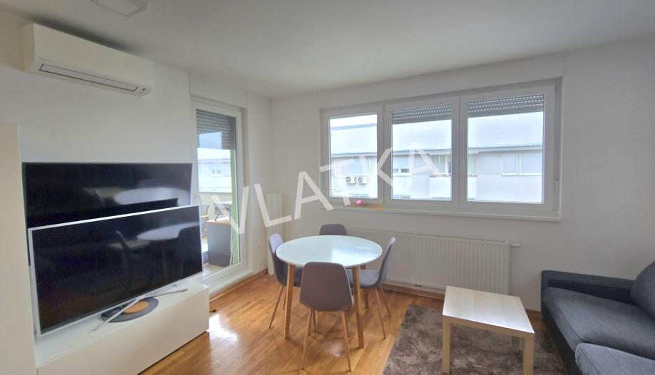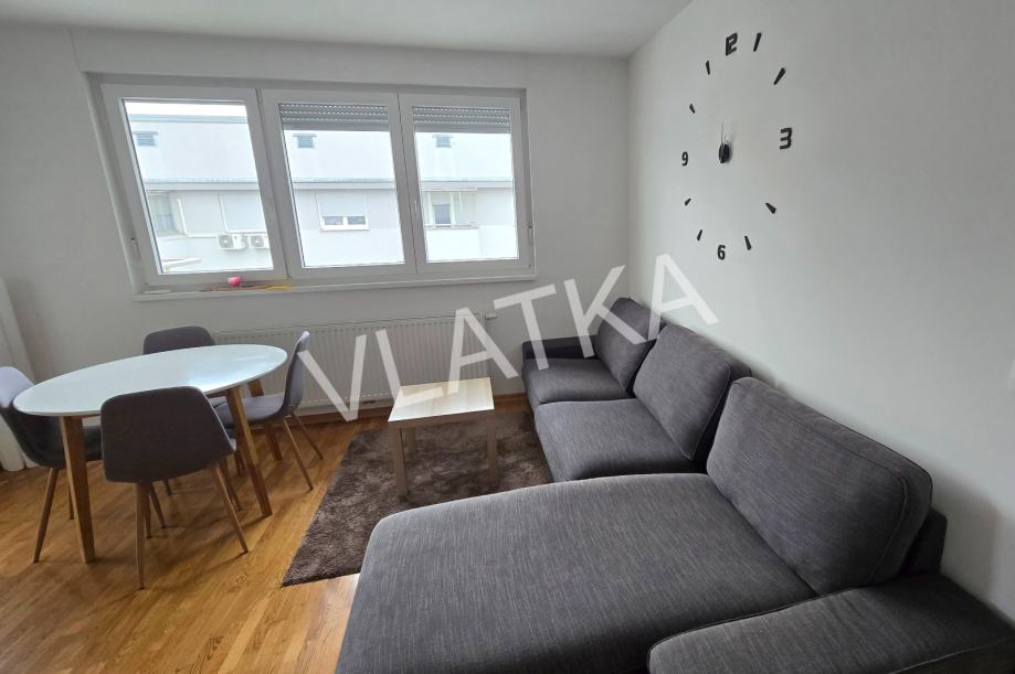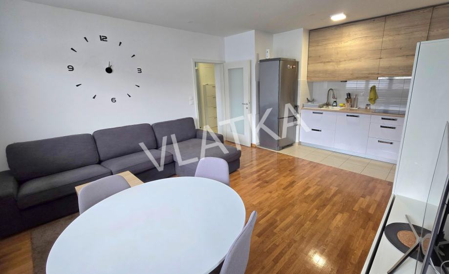 A furnished 2-bedroom apartment for rent in a newer building in a great location just 11 minutes by car from Rimac car company, right next to shops, cafes and public transport.