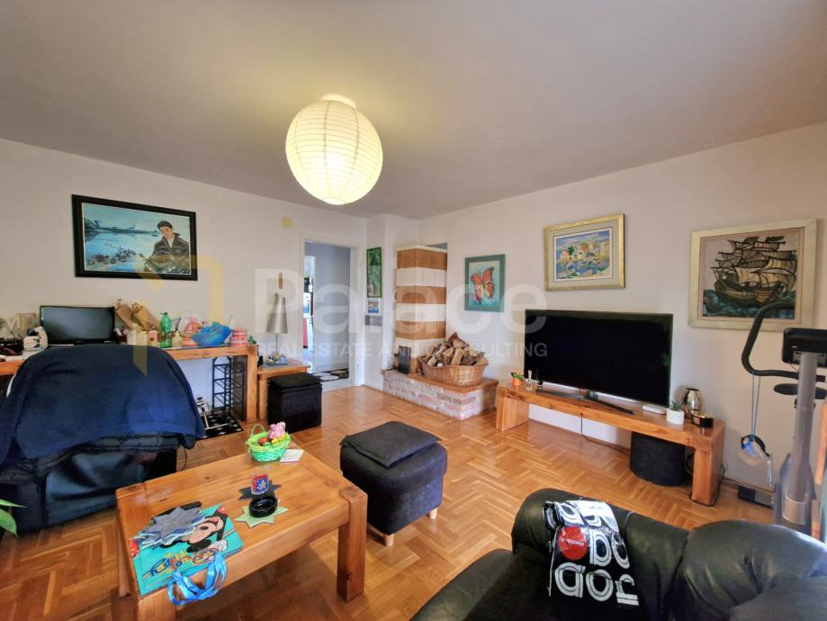 Sastoji se od: hodnika kupaonice, dnevnog boravka, balkona i 2 sobe. U podrumu se nalazi pripadajuća ostava. Stanu pripada i garaža s motornim podizačem vrata.