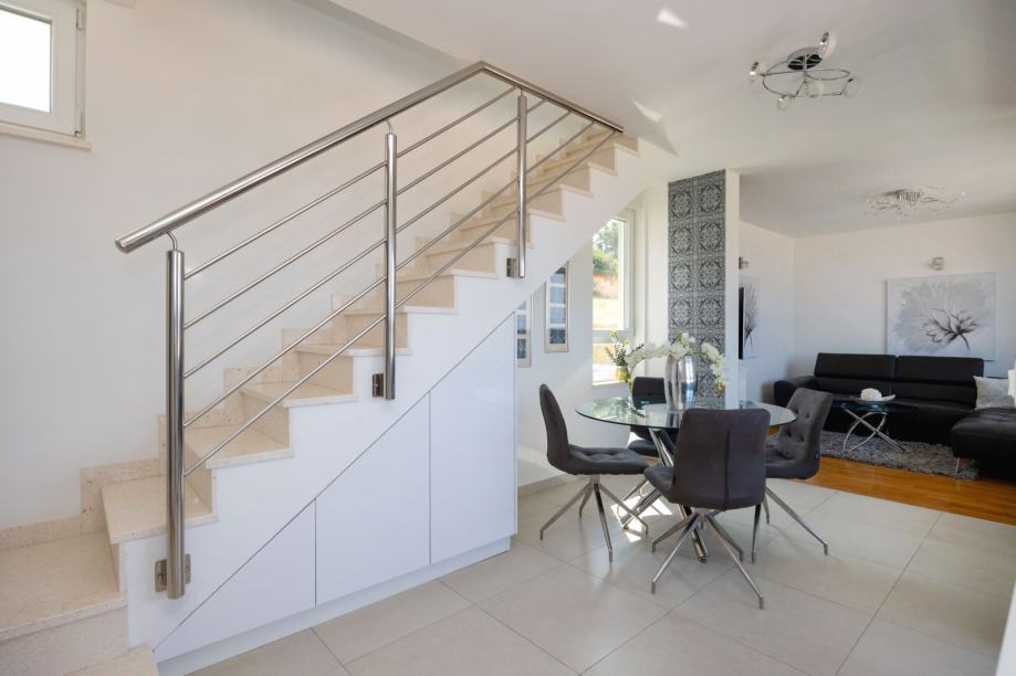 Na prvoj etaži nalazi se dnevni boravak, kuhinja, blagovaonica, kupaonica i lođa.