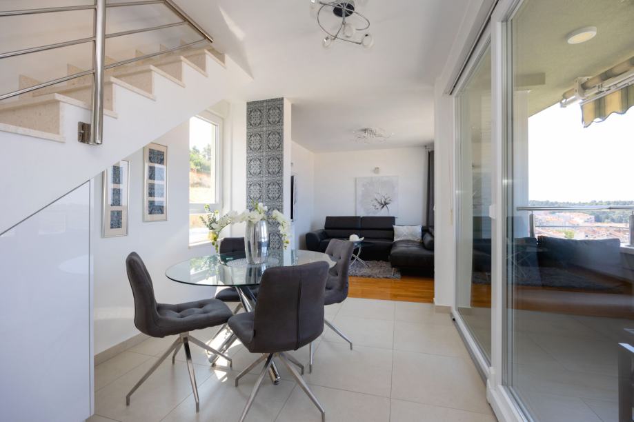 - Prostran i svijetao dnevni boravak s velikim staklenim stijenama