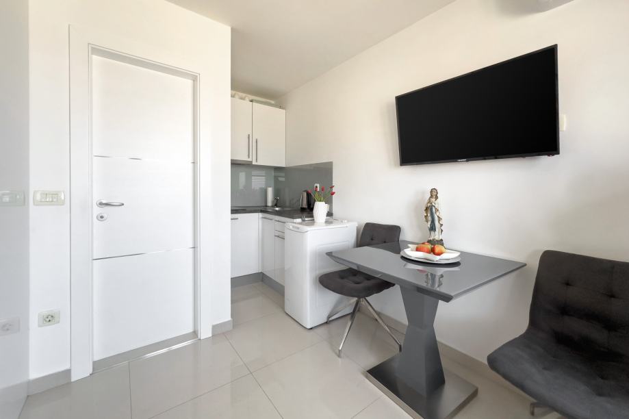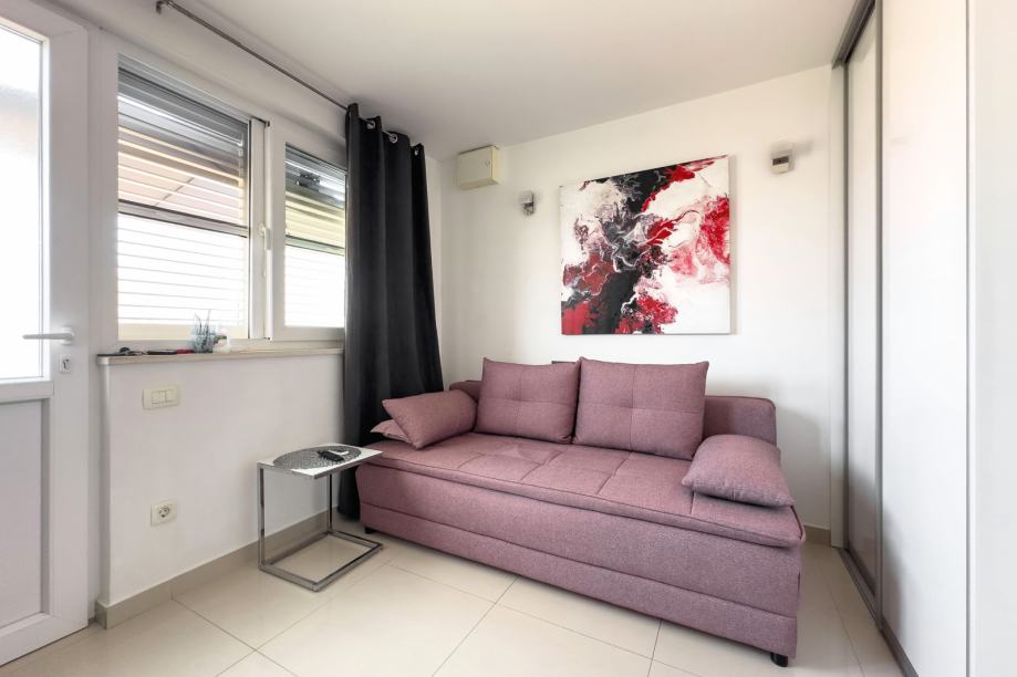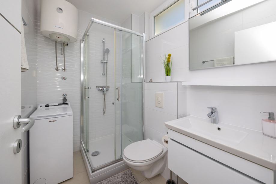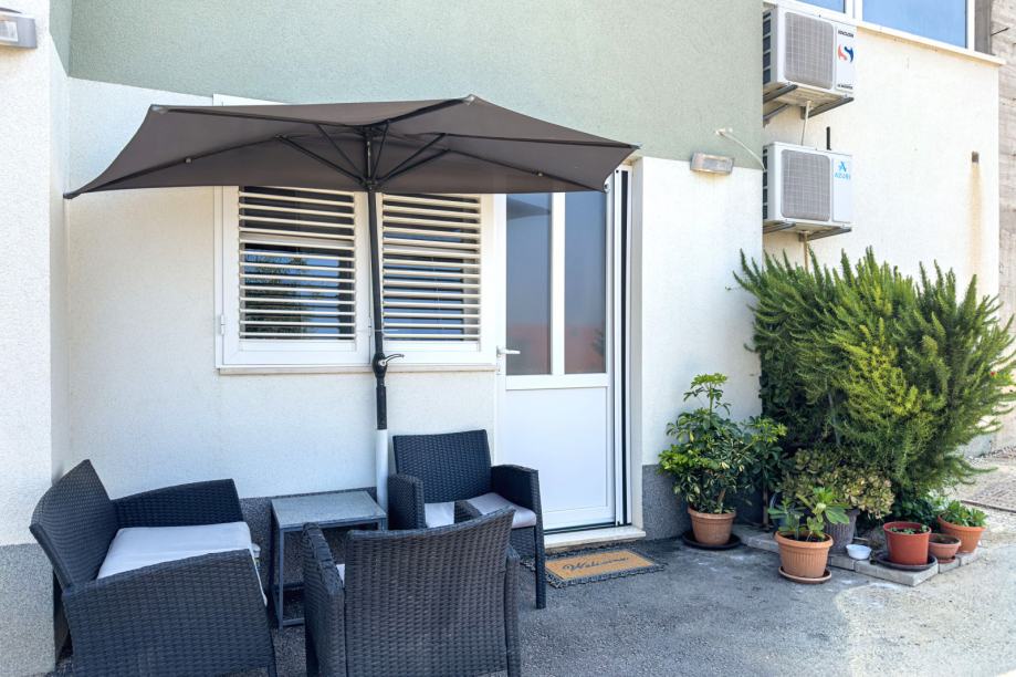U prizemlju zgrade nalazi se dodatna, potpuno opremljena garsonjera s vlastitim ulazom – izvrsna za turistički najam ili kao samostalan apartman.
