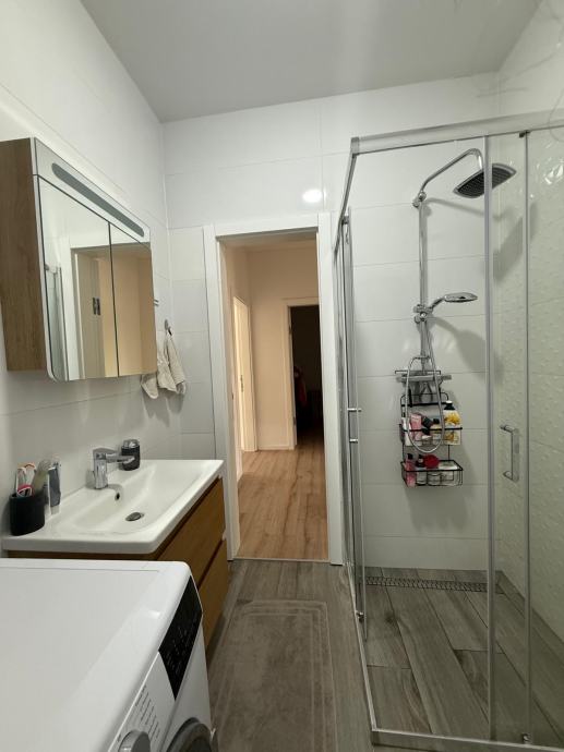 Prodaje se namješten trosoban stan u strogom centru. Stan se nalazi na prvom katu zgrade od ukupno tri kata. Sastoji se od hodnika, dnevnog boravka s blagovaonicom i kuhinjom, loggie, degažmana, kupaonice, garderobe, sobe 1 i sobe 2. Ukupne površine 97,91 m2. Uz stan je pripadajuće natkriveno parkirno mjesto površine 21,12 m2. Orijentacije: sjever/jug. Zgrada izgrađena 2022.g.. Stan je opremljen: PVC stolarija, protuprovalna vrata, novi namještaj, kuhinja, aparati.