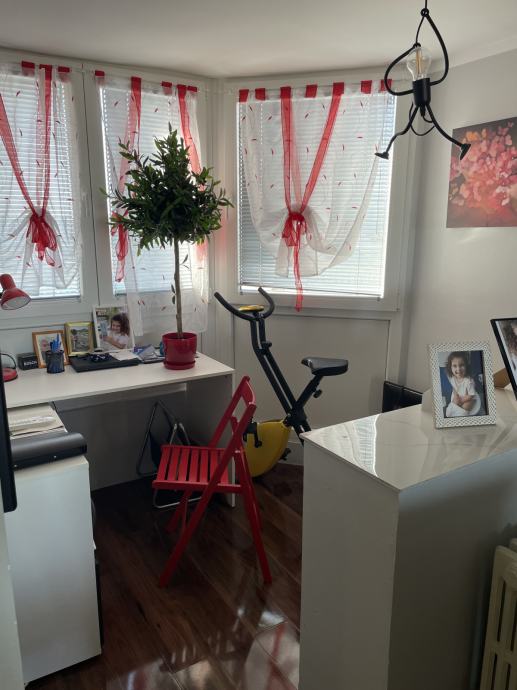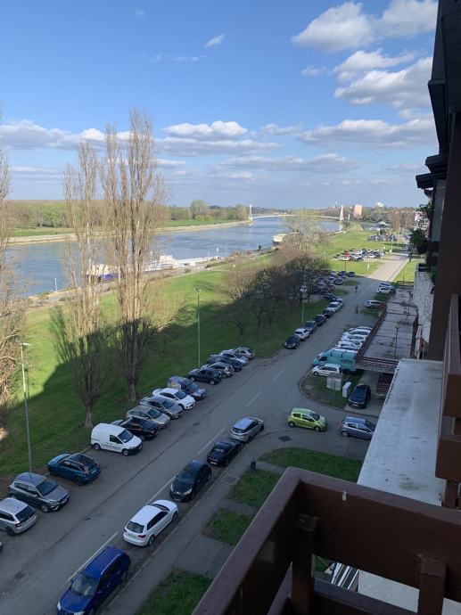 Iznajmljuje se namješten trosoban stan u centru grada, Gornjodravska obala. Stan se nalazi na šestom katu zgrade od ukupno sedam katova. Sastoji se od hodnika, dnevnog boravka, blagovaonice, kuhinje, kupaonice, ostave, lođe, WC-a, spavaće sobe 1, spavaće sobe 2 i balkona.