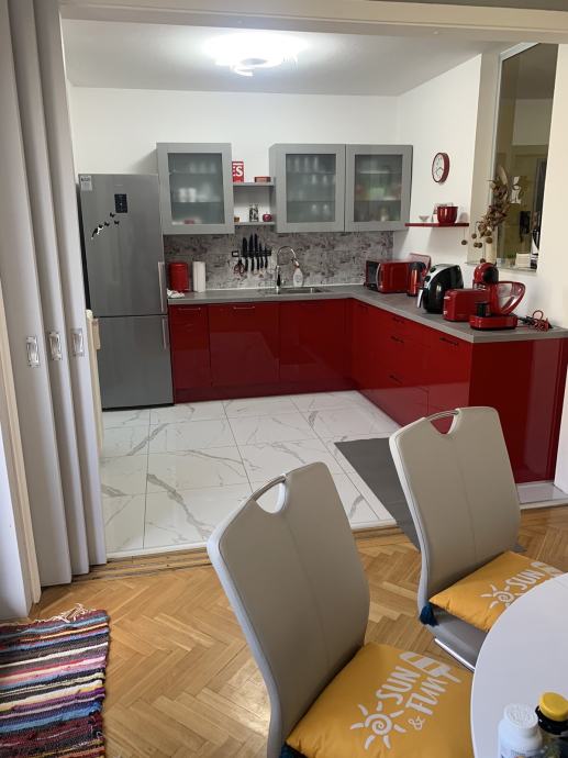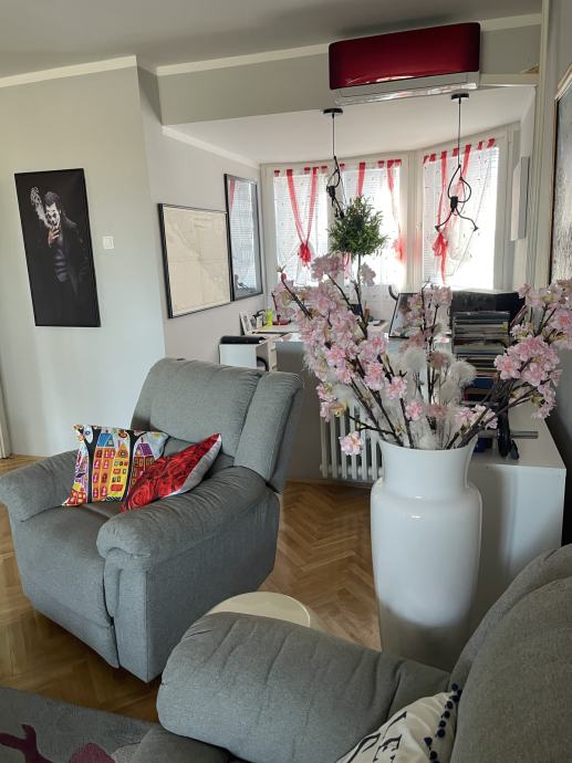 Stan je kompletno renoviran (nova PVC stolarija, nove vodovodne i strujne instalacije, kupaonica, pločice...) i opremljen novim namještajem, tehnikom i aparatima. Grijanje: gradska toplana. Lift!
