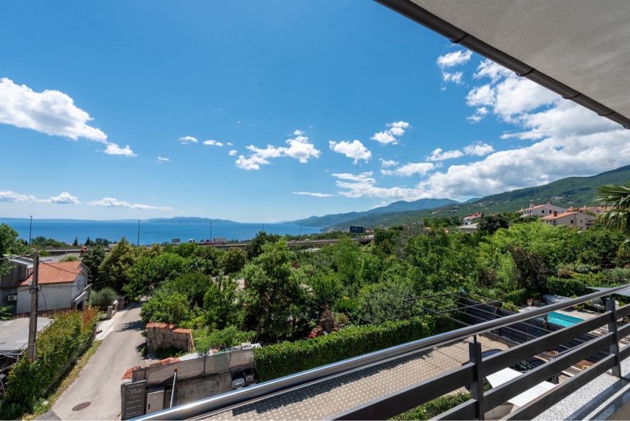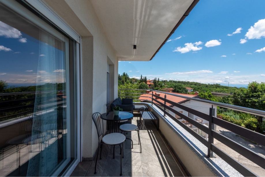 Stan se sastoji od hodnika, kuhinje s blagovaonicom i dnevnim boravkom, više spavaćih soba te kupaonice. Iz dnevnog prostora izlazi se na veliki balkon, s kojeg se pruža prekrasan panoramski pogled na cijeli Kvarner i otoke – jedna od najvećih prednosti ove nekretnine.
