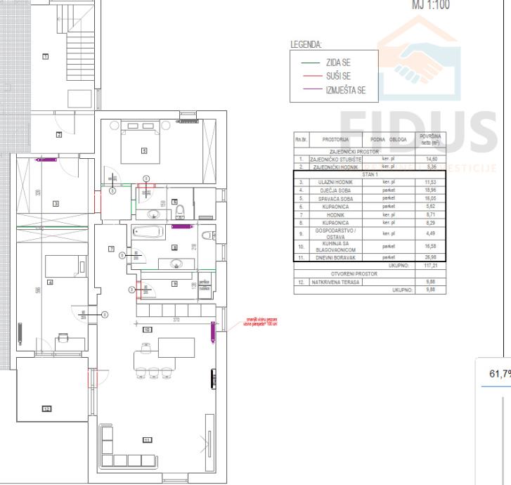 Površina stana je 117 m2 + 8 m2 balkona, a što čini obračunsku površinu od 120 m2 + 1 parkirno mjesto, a što ukupno iznosi 239,900 EUR-a. Postoji mogućnost kupovine još jednog parkirnog mjesta te cijelog tavana ili samo iznad stana - ovisno o potrebama i željama