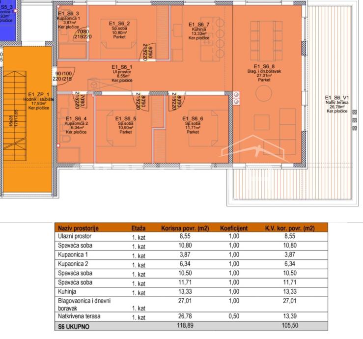 Ukupna neto površina stana s pripadajućim parkirnim mjestima iznosi 110 m².