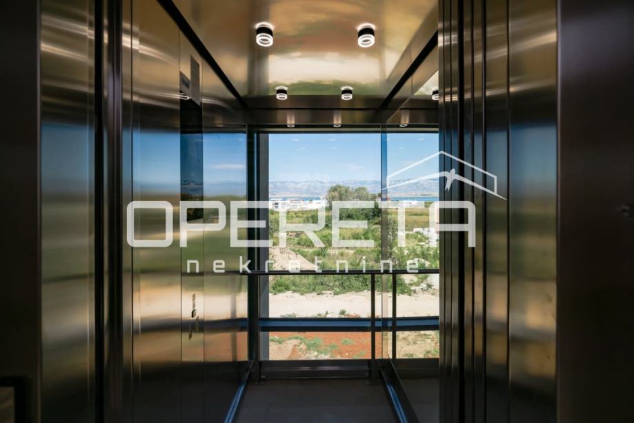 Stan ukupne korisne površine 119 m² sastoji se od ulaznog prostora, kuhinje, prostranog dnevnog boravka s blagovaonicom, kupaonice te tri spavaće sobe, od kojih jedna ima vlastitu kupaonicu. Iz dnevnog dijela izlazi se na natkrivenu terasu površine 27 m² s koje se pruža prekrasan pogled na more i Velebit.