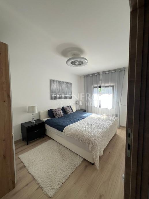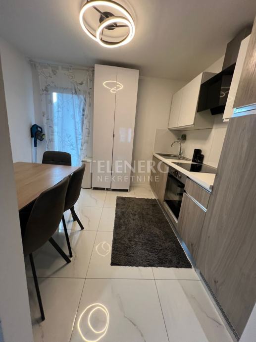 Stan je kompletno namješten, opremljen s perilicom rublja, perilicom za suđe, hladnjakom s ledenicom, pećnicom, indukcijskom pločom i smart TV-om.