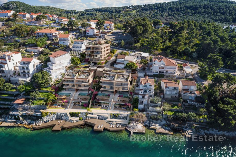 Zgrada u kojoj se stan nalazi ima ukupno sedam stambenih jedinica, što osigurava mir, privatnost i intimno okruženje, a stan je orijentiran na sjeverozapad. Vlasnicima su na raspolaganju brojni dodatni sadržaji koji čine život u ovom kompleksu posebnim – krovna terasa s lounge zonom i panoramskim pogledom na more, fitness prostor i saune u suterenu, kao i bazen za trenutke potpunog opuštanja. Uz stan dolazi garažno parkirno mjesto u podrumu zgrade, a dostupna je i mogućnost kupnje dodatnog garažnog parkirnog mjesta.