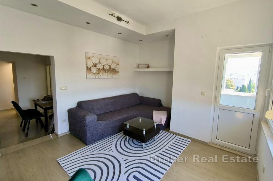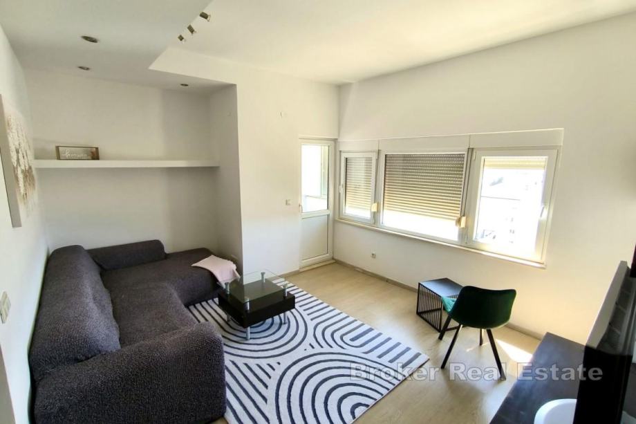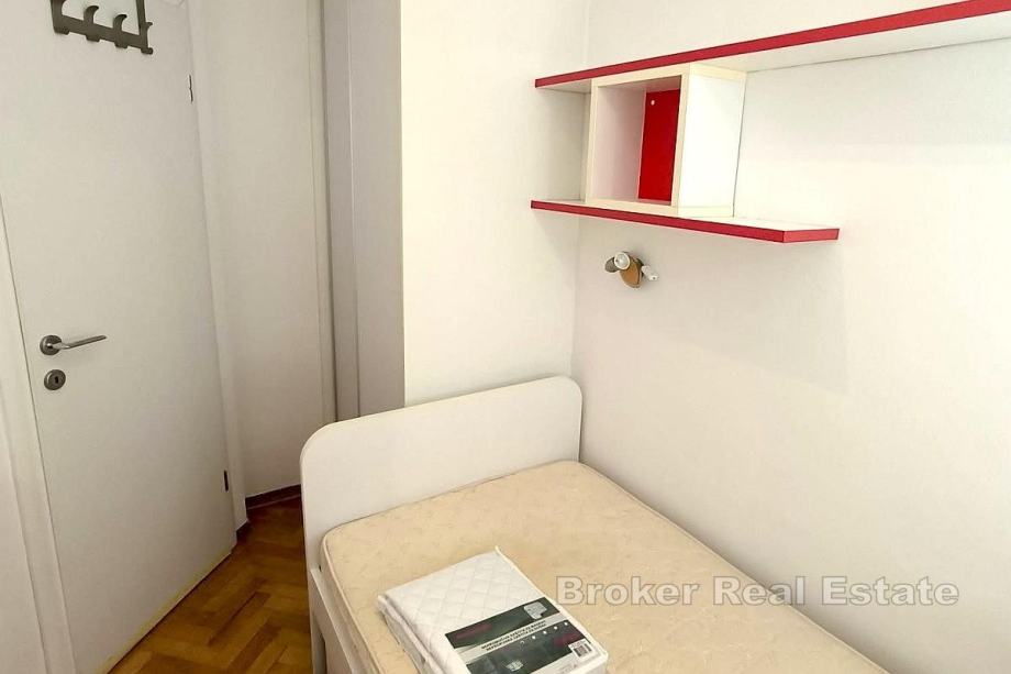 Iznajmljuje se manji trosobni stan na Skalicama, smješten u mirnom kvartu na pješačkoj udaljenosti od centra grada. Stan se nalazi na petom, ujedno i zadnjem katu stambene zgrade. Sastoji se od tri spavaće sobe, kuhinje s manjom blagovaonicom te prostranog i osunčanog dnevnog boravka iz kojeg se pruža prekrasan pogled na grad i more. Stan je dostupan isključivo za dugoročni najam, uz obavezno sklapanje ugovora te polog u iznosu jedne mjesečne najamnine.Režijski troškovi nisu uključeni u cijenu najma i plaćaju se posebno. Kroz zgradu je proveden optički kabel, što omogućuje korištenje brzog interneta.