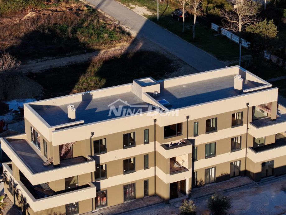 Na prodaju je trosoban stan na prvom katu moderne novogradnje, smještene u mirnom dijelu mjesta Sabunike, svega 300 metara od mora i pješčanih plaža. Zgrada broji ukupno osam stambenih jedinica, a planirani završetak radova predviđen je za lipanj 2025. godine.