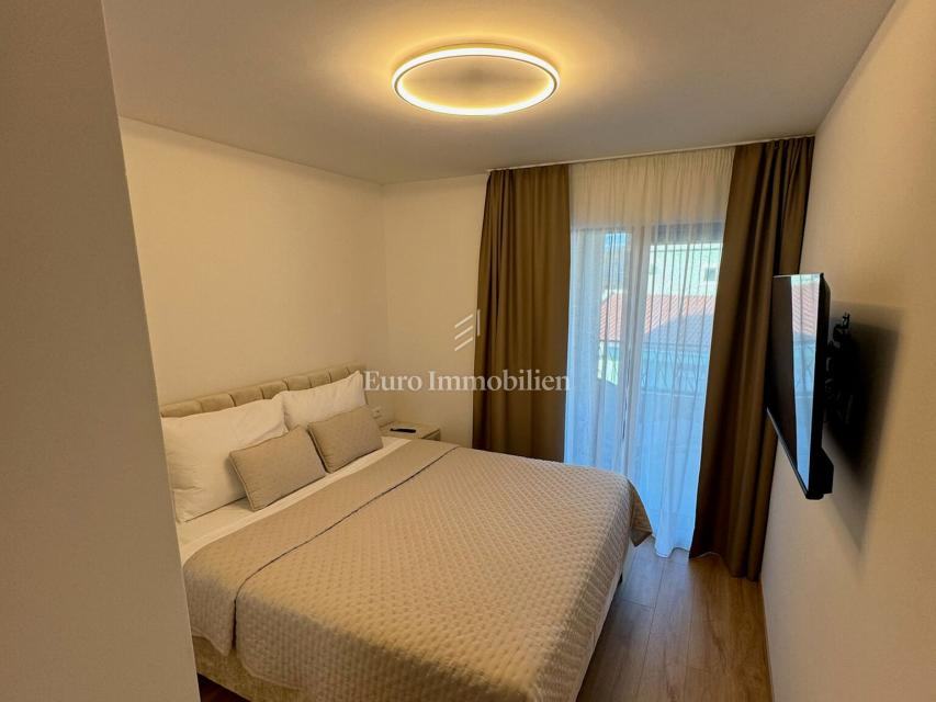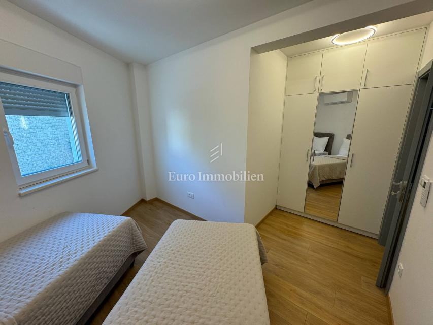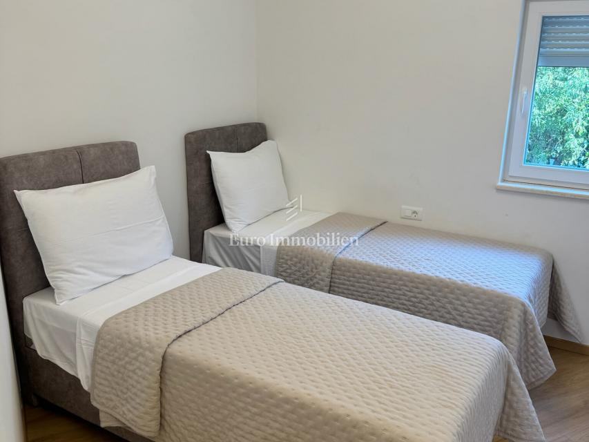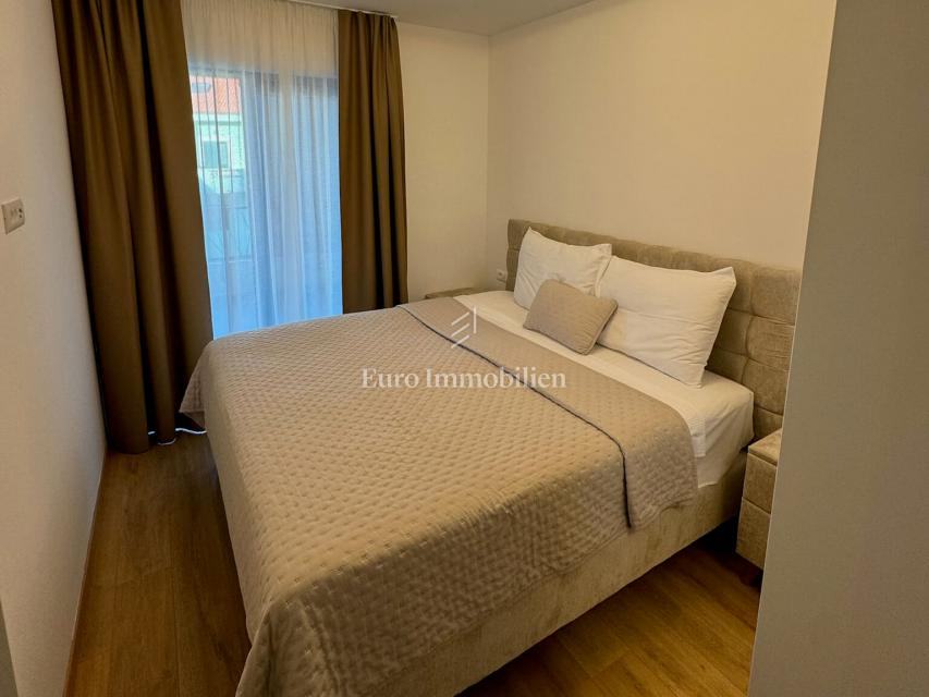Prilikom gradnje i unutarnjeg uređenje stanova su se koristili najkvalitetniji materijali. Vrhunska toplinska i zvučna izolacija, vanjska PVC stolarija s pomičnim griljama, klima uređaj u svakoj sobi, prvoklasni hrastov parket, keramičke pločice visoke kvalitete, kupaonice u potpunosti opremljene za upotrebu s ugrađenim podnim grijanjem, kameni pod na stepeništu, inox ograda na stubištu, protuprovalna ulazna vrata, SAT-TV, te priključak za internet. Stan je odmah useljiv.