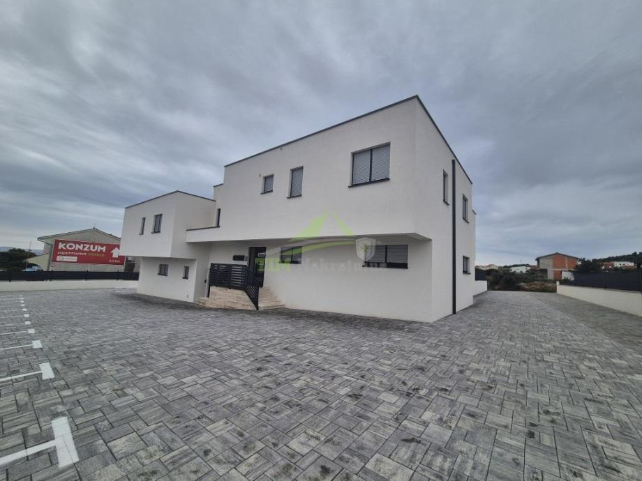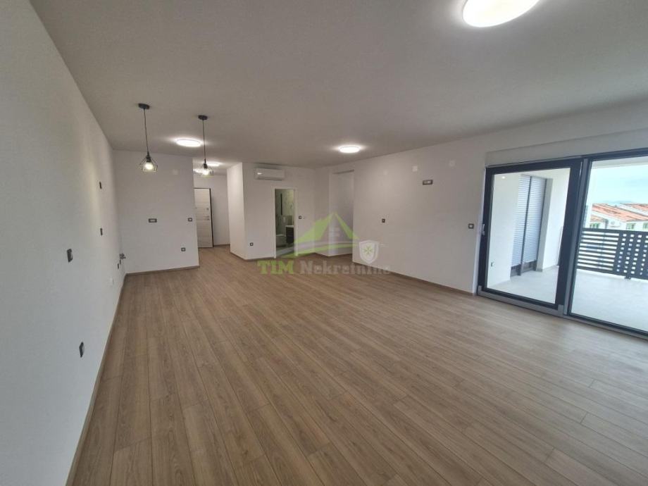 Trosobni stan sa pogledom na more neto površine 82.95 m2; smješten na 1. katu stambene zgrade na predivnoj lokaciji koji pruža sve prednosti za moderan način života, a ujedno blizinu i dostupnost grada te svih aktivnosti i sadržaja; udaljeno svega 700 metara od mora.Zgrada je projektirana i građena po najnovijim smjernicama za gradnju zgrade; grijanje kao i hlađenje putem klima uređajima u svim prostorijama; podno grijanje u kupaonicama; vrhunska PVC stolarija sa elektro roletama te komarnicima; kvalitetan vodootporan laminat na podovima kao i vrhunska keramika u svim kupaonicama.Stan je prilagođeni modernim trendovima i potrebama obiteljskog stanovanja, osvijetljeni i komforni, gdje je promišljenim projektiranjem i dobro razgrađenim tlocrtima nastao optimalan omjer iskorištenosti prostora i ugodnog boravka.Stanu pripadaju i jedno parkirno mjesto.
