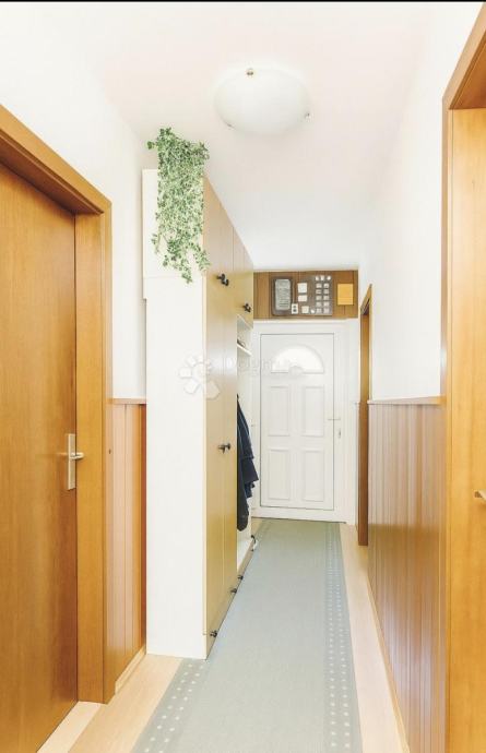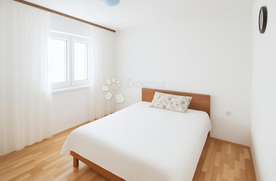 Stan ima vlastiti ulaz i vanjsko stubište, prozračan je, trostrano orijentiran, s prostranim dnevnim boravkom, blagovaonicom, kuhinjom i izlazom na dugi balkon s južne strane s pogledom na more te tri spavaće sobe i kupaonicom.Uredno održavan i odmah useljiv, s mogućnošću preuređenja u dvije zasebne stambene jedinice.