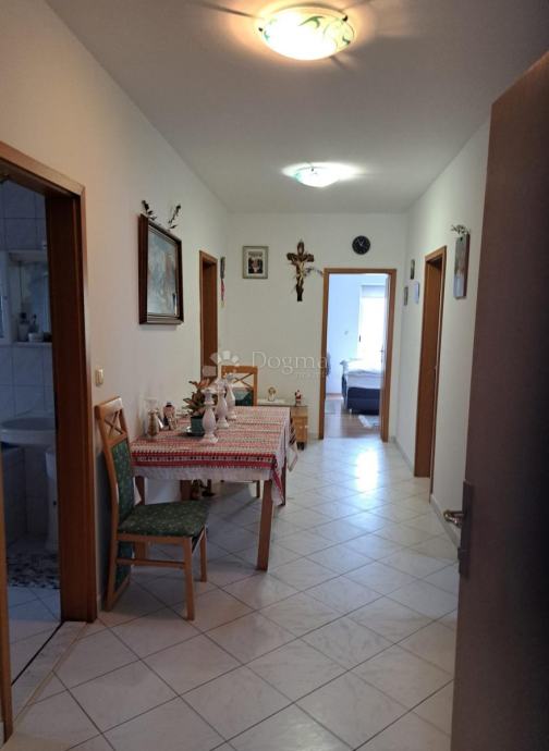 Stan se nalazi na četvrtom katu zgrade bez lifta, a do njega se dolazi zajedničkim stepeništem koje vodi do odvojenog i zatvorenog predulaza (zatvorene lođe od 10,98m2).Stan je funkcionalnog rasporeda i sastoji se od prostranog hodnika, tri spavaće sobe, zasebnog WC-a, velike kupaonice s WC-om te kuhinje povezane s dnevnim boravkom iz kojeg se izlazi na natkrivenu terasu.